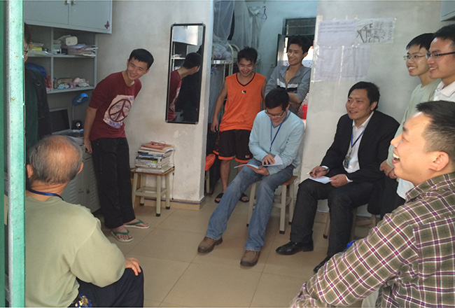 黄水光主任一行深入各个员工宿舍进行走访,在与同学们的交谈中了解到同学们对学校和学院存在的一些问题提出了意见和建议。