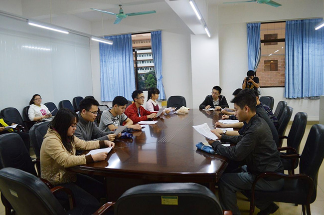 (计算机系第一员工党支部各党员在认真阅览党的群众路线教育文件)