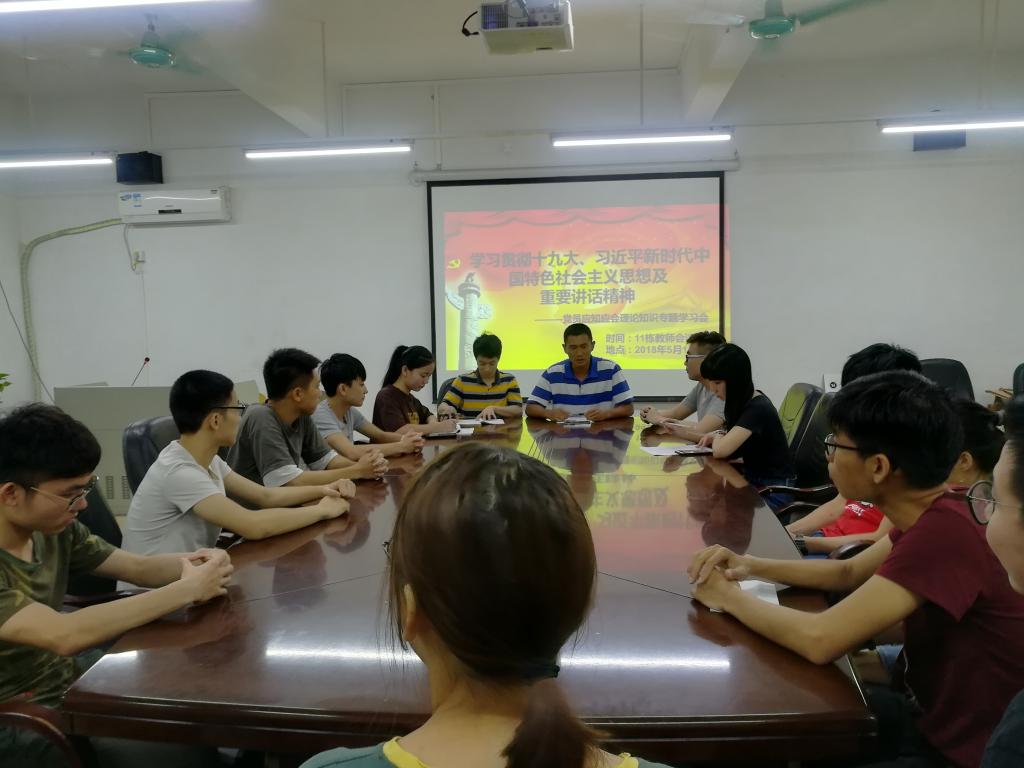 (通讯员 张伊凡)2018年5月1日,太阳成集团tyc33455cc员工党支部开展“学习贯彻十九大、习近平新时代中国特色社会主义思想及重要讲话精神”专题学习会。出席本次会议的有公司党总支副书记刘亮、员工党支部书记黄鸿鑫以及全体员工党员。