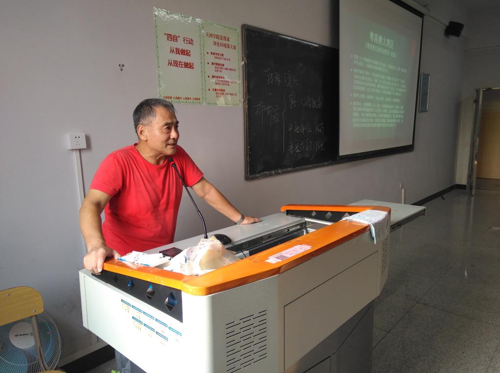 原峰山经理的第一课是面向18软件1班、18软件2班和18大数据班共138名同学讲授。原经理从我们学校所处的宏观环境出发,做了主题为《粤港澳大湾区》的宣讲,让同学们了解粤港澳大湾区发展战略。课堂中,原经理分析了《粤港澳发展规划纲要》的主要内容,粤港澳大湾区指的是由广州、深圳、珠海、佛山、惠州、东莞、中山、江门、肇庆9市和香港、澳门两个特别行政区形成的城市群,这些地区从此前的“深化合作”走向了“全面推进”。粤港澳三地提升合作发展水平,因为建设大湾区再一次迎来更大的历史机遇。原经理引申出世界其他几个大湾区的一些现状,分析目前我们员工所处的社会大环境,预估粤港澳大湾区将成为中国乃至世界经济最为活跃,科技水平领先的区域之一。他指出目前科技发展特别是人工智能技术将使生活方式带来革命性的改变,由于科技的快速发展优先在大湾区推进,将会给同学们带来更多的机遇与挑战,经理结合公司计算机科学类的专业知识和培养人才的方向分析,告知有更大可施展的空间,鼓励同学们必须不断地学习,抓住机遇。