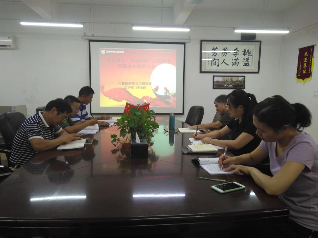 为了进一步加强二级公司党政领导班子思想政治建设,推动理论武装工作深入开展,10月8日下午,太阳成集团tyc33455cc围绕“不忘初心,牢记使命”主题开展院中心组学习会。党总支书记刘亮主持学习会,学院正副经理、办公室主任和组织员都参加了学习研讨。