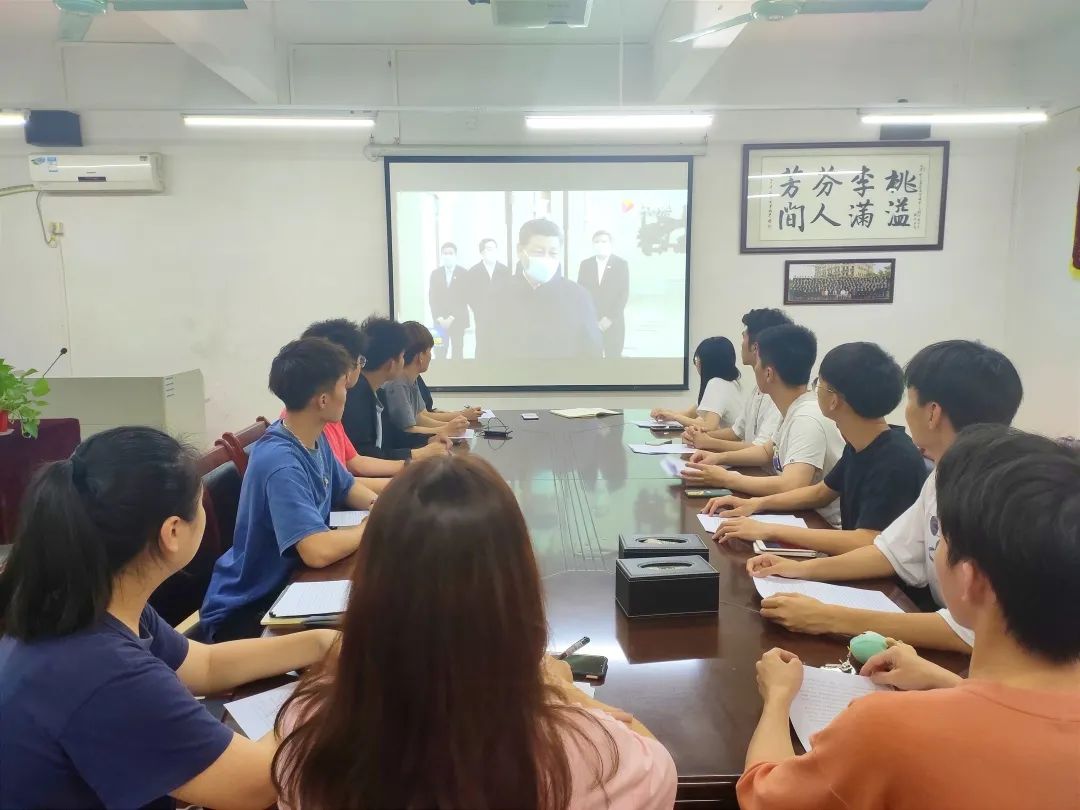 接着,党支部全体成员观看习近平总书记在清华大学考察的视频。在视频中,习近平总书记指出:“当代中国青年是与新时代同向同行、共同前进的一代,生逢盛世,肩负重任。”习近平总书记强调,广大青年要爱国爱民,从党史学习中激发信仰、获得启发、汲取力量,不断坚定“四个自信”,不断增强做中国人的志气、骨气、底气,树立为祖国为人民永久奋斗、赤诚奉献的坚定理想。