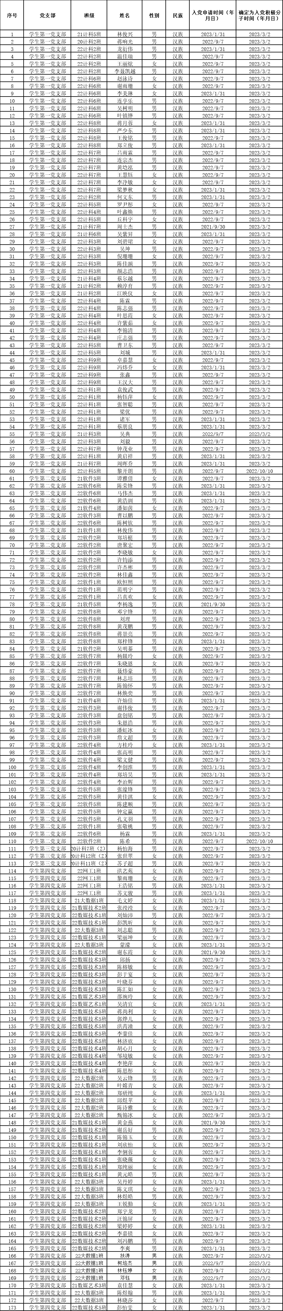 在听取培养联系人、党员和群众意见的基础上,经支部大会、支委会研究决定,拟确定林俊兴等173名同志为入党积极分子,具体情况公示如下。有异议者,请自本公示之日起,通过电话、电子邮件或书面形式,向党支部或党总支办公室反映入党积极分子在理想信念、政治立场、思想作风、工作表现、群众观念、廉洁自律等方面的情况和问题,反映情况要实事求是并署真实姓名。党支部和党总支将对反映问题严格保密,对反映问题进行调查核实,弄清事实真相,并以适当方式向反映人反馈。