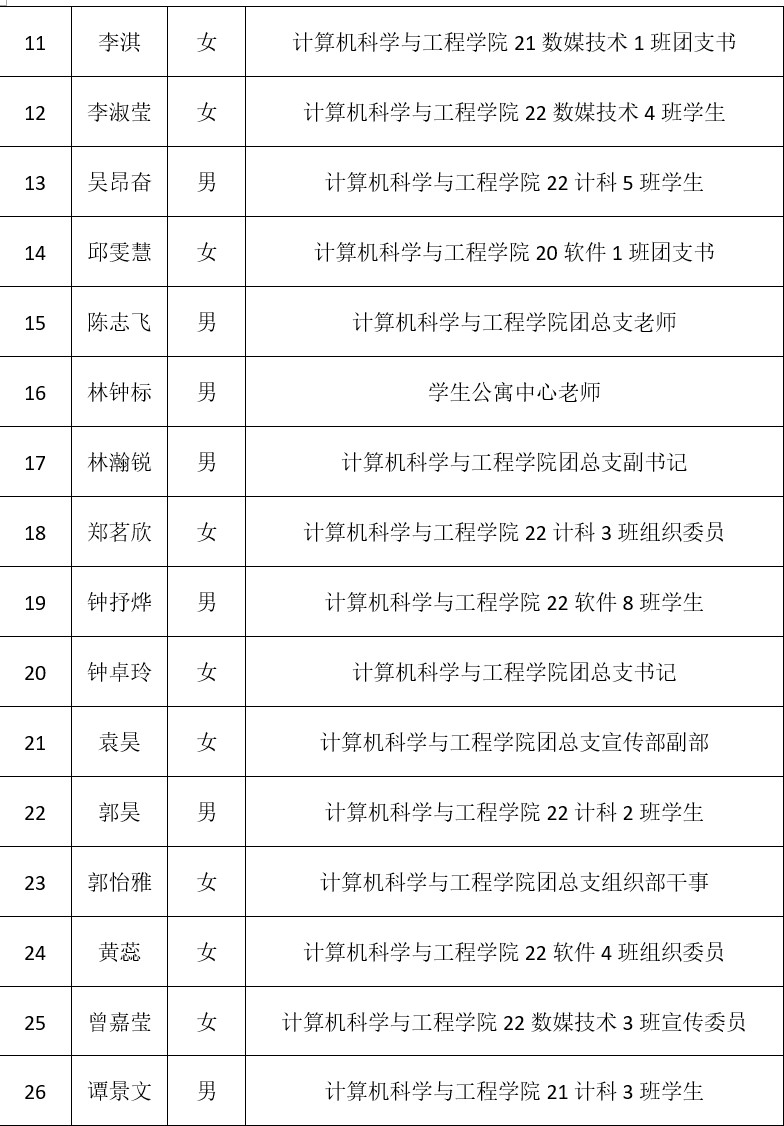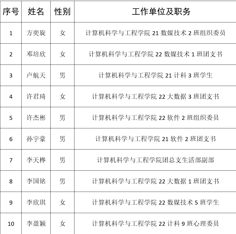 共青团太阳成集团第一次代表大会代表候选人初步人选公示名单(二)