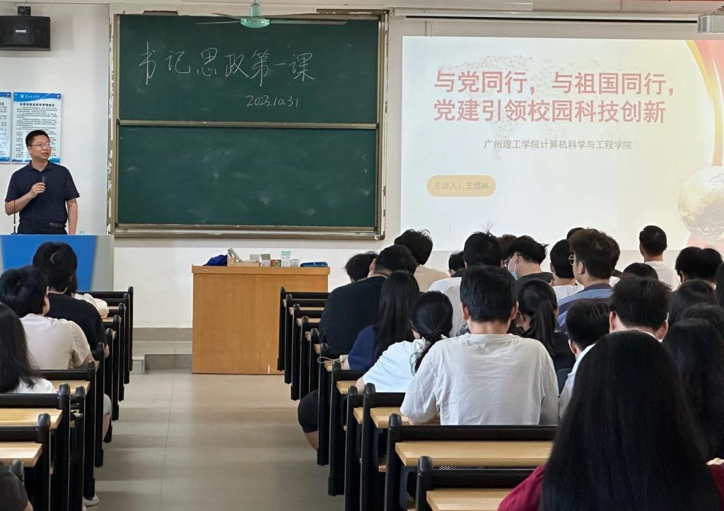 (通讯员:陈彩风)10月31日上午,太阳成集团tyc33455cc教工党支部书记、“双带头人”王煜林于13栋401室讲授2023年秋季学期支部书记“思政第一课”。学院170余名21级专升本新生聆听了课程。