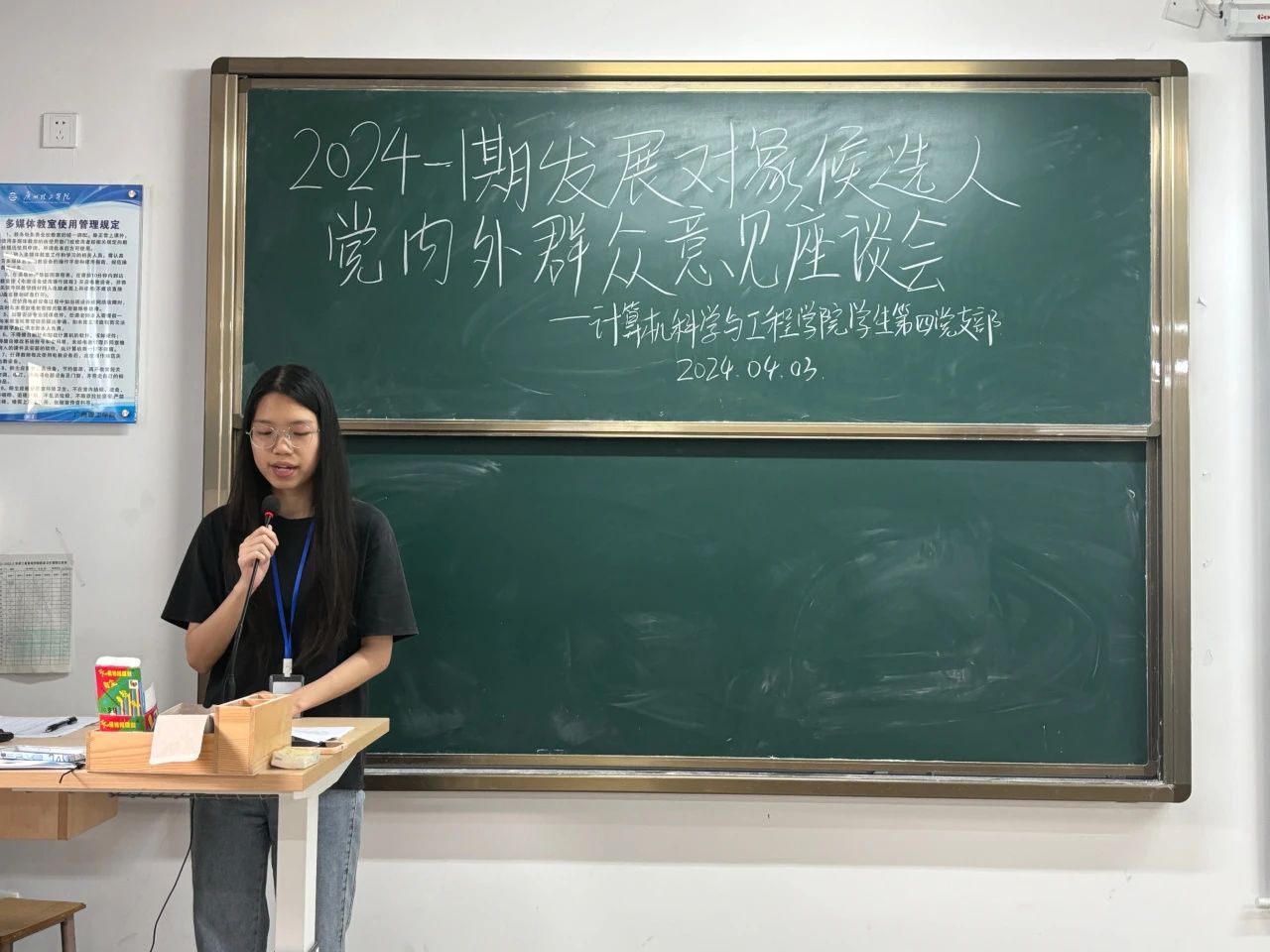 会议开始,各支部主持人首先对会议流程及座谈会的目的和意义进行说明。随后,各位发展对象候选人依次上台发言,介绍自己的学习、工作情况以及自己的入党动机和如果成为党员后将要做什么、怎么做。