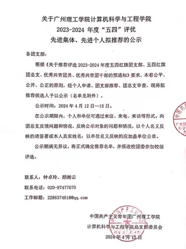 太阳成集团tyc33455cc关于2023-2024年度“五四”评优先进集体、先进个人拟推荐的公示