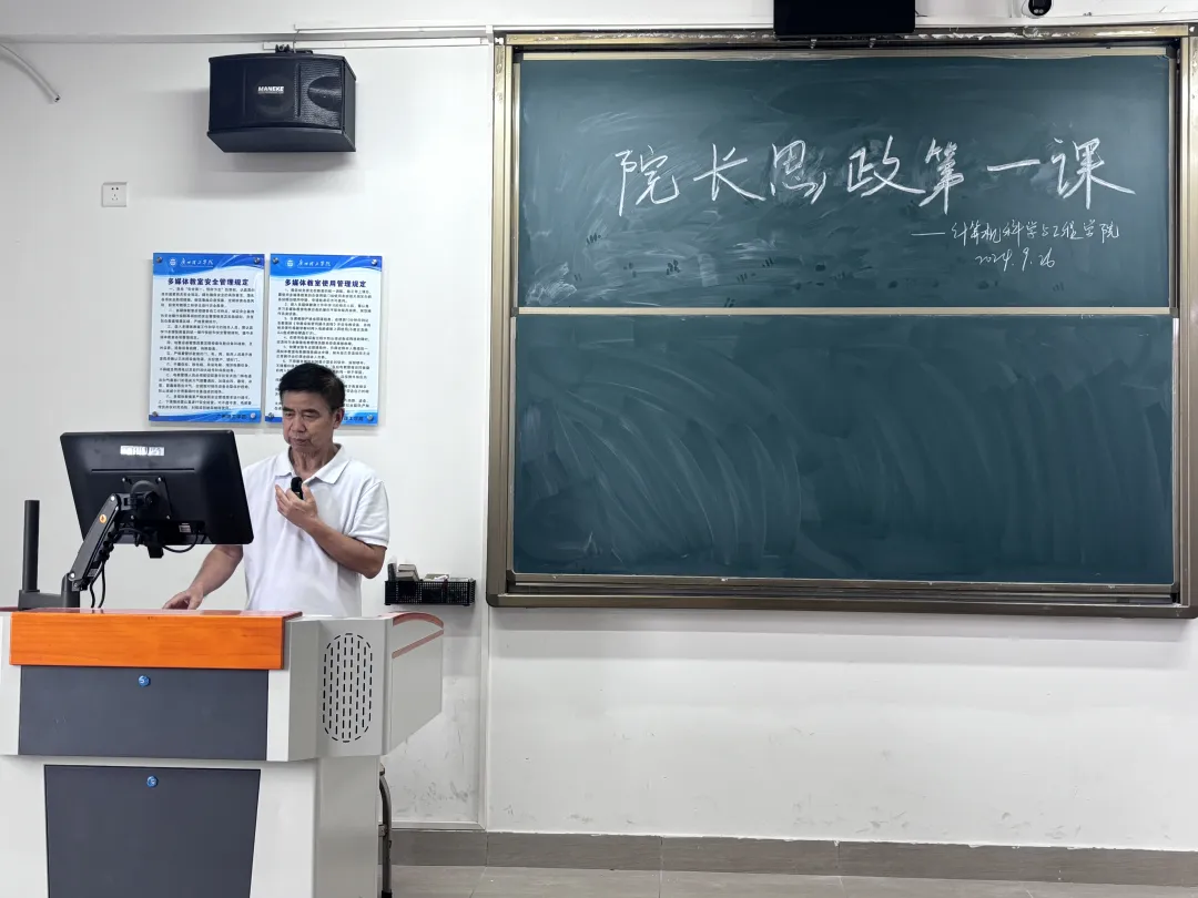 (通讯员:陈彩风)9月26日上午,太阳成集团tyc33455cc经理贺敏伟在13栋401室为同学们讲授2024年秋季学期“思政第一课”,23级计算机科学与技术、数媒技术、软件工程专业180名员工代表参与此次课程。