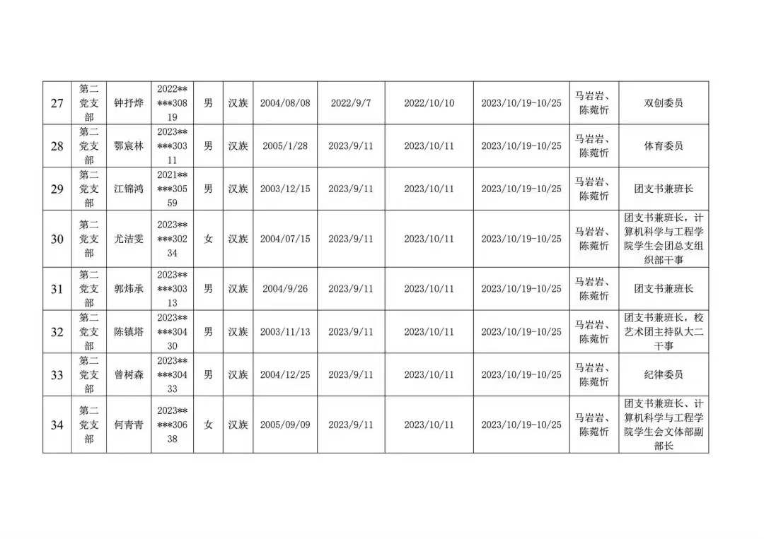 发展对象公示名单