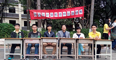 3月16号下午,计算机系2015年班际篮球赛在一饭灯光篮球场拉开帷幕。出席本次开幕式的嘉宾有计算机系办公室袁桢强主任,团总支何祉谕书记,员工会黄泰宁主席,员工会朱阳川副主席,策划顾问钟秉峰,体育部谢超越部长。