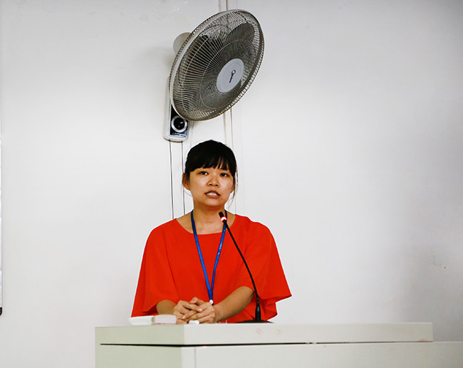 大会第二环节:团总支书记何祉谕针对员工会各个部门工作作总结。她就本学期员工会举办的47场员工活动以及制定章程、建立部门制度、归档这三项重点工作提出了一些建议和看法。她强调,这一届由团总支副书记黄泰宁、员工会主席陈松泽带领的主席团成员在员工会工作中也起到了很好的先锋带头作用,另一方面,员工会干部与干事之间在工作过程中做到了相互沟通和协调,充分展现出计算机系团总支员工会团结与合作的一面。