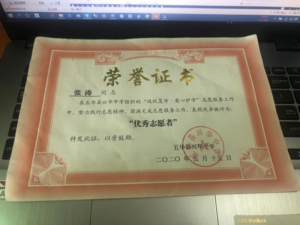 疫情尚未结束,员工每天穿梭在熙攘的街道,存在一定的安全隐患。在课余时间里,公司学子用实际行动参与护学志愿活动,体现了当代老员工的担当与作为,获得了人民的好评,因此,当地中学授予张涛“优秀志愿者”证书。