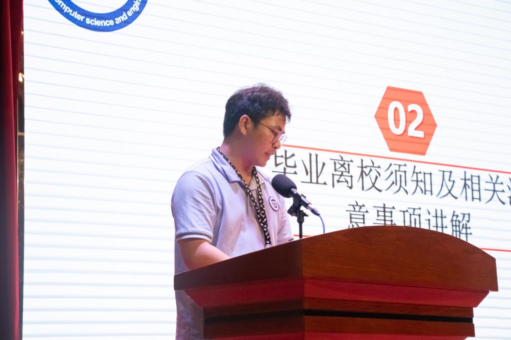 会上,学工办主任、学工组长陈健老师为毕业生详细讲解了离校流程、各项手续办理注意事项以及对可能出现的问题进行说明,同时对毕业生的党团关系转接、毕业证的领取等事宜进行了详细的介绍,为毕业生离校工作提供便捷。