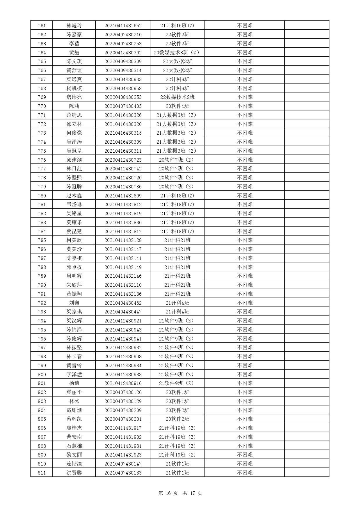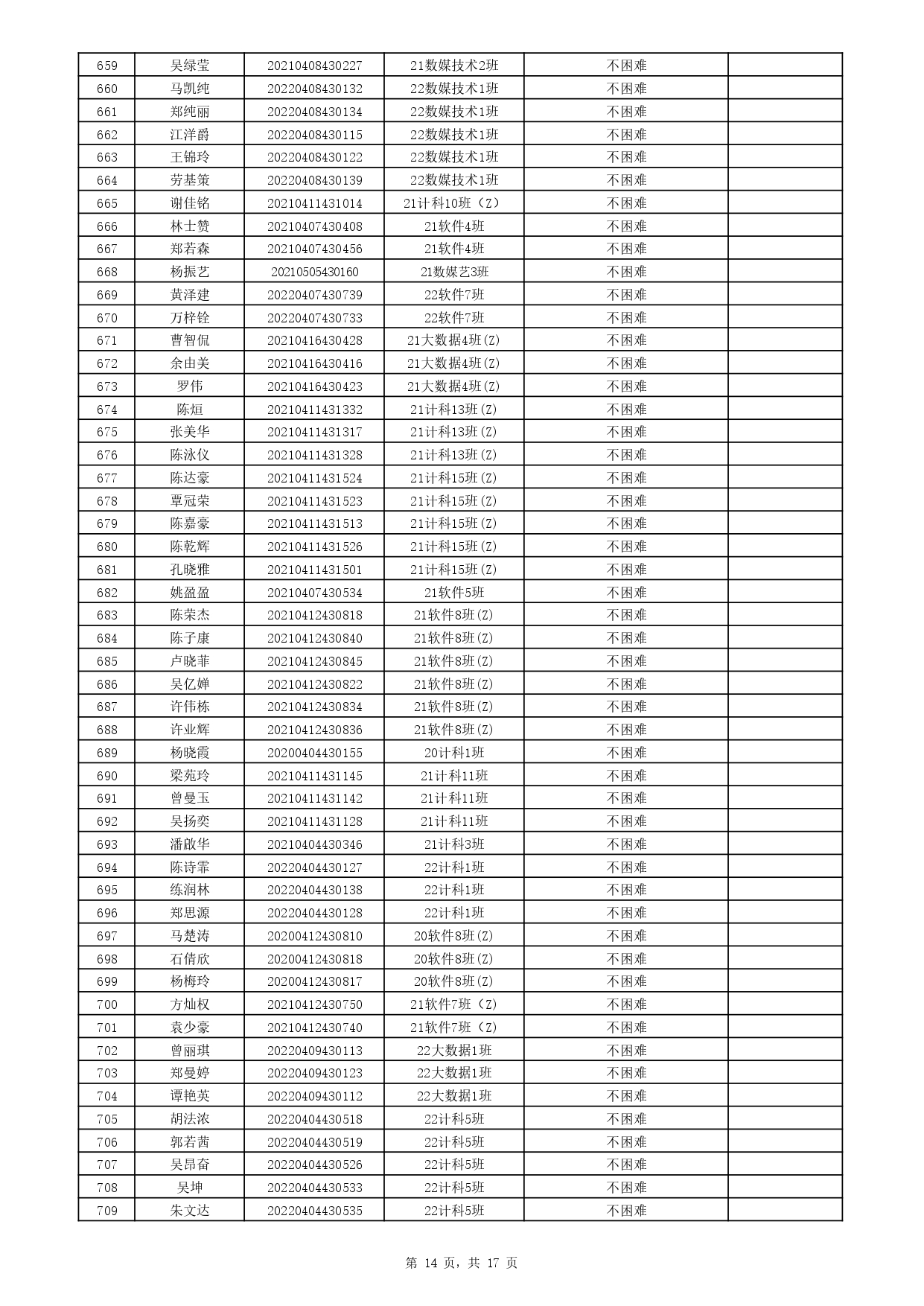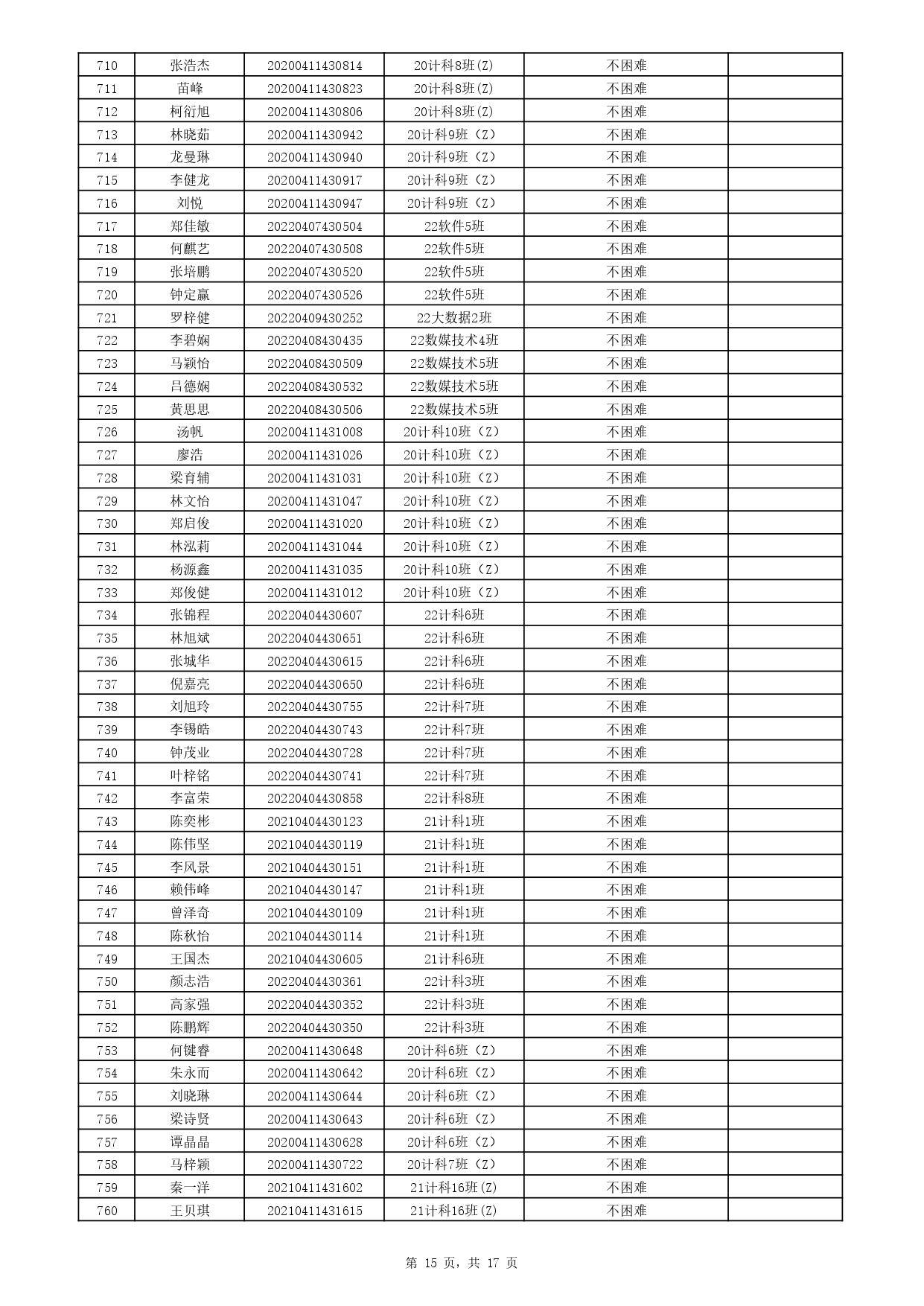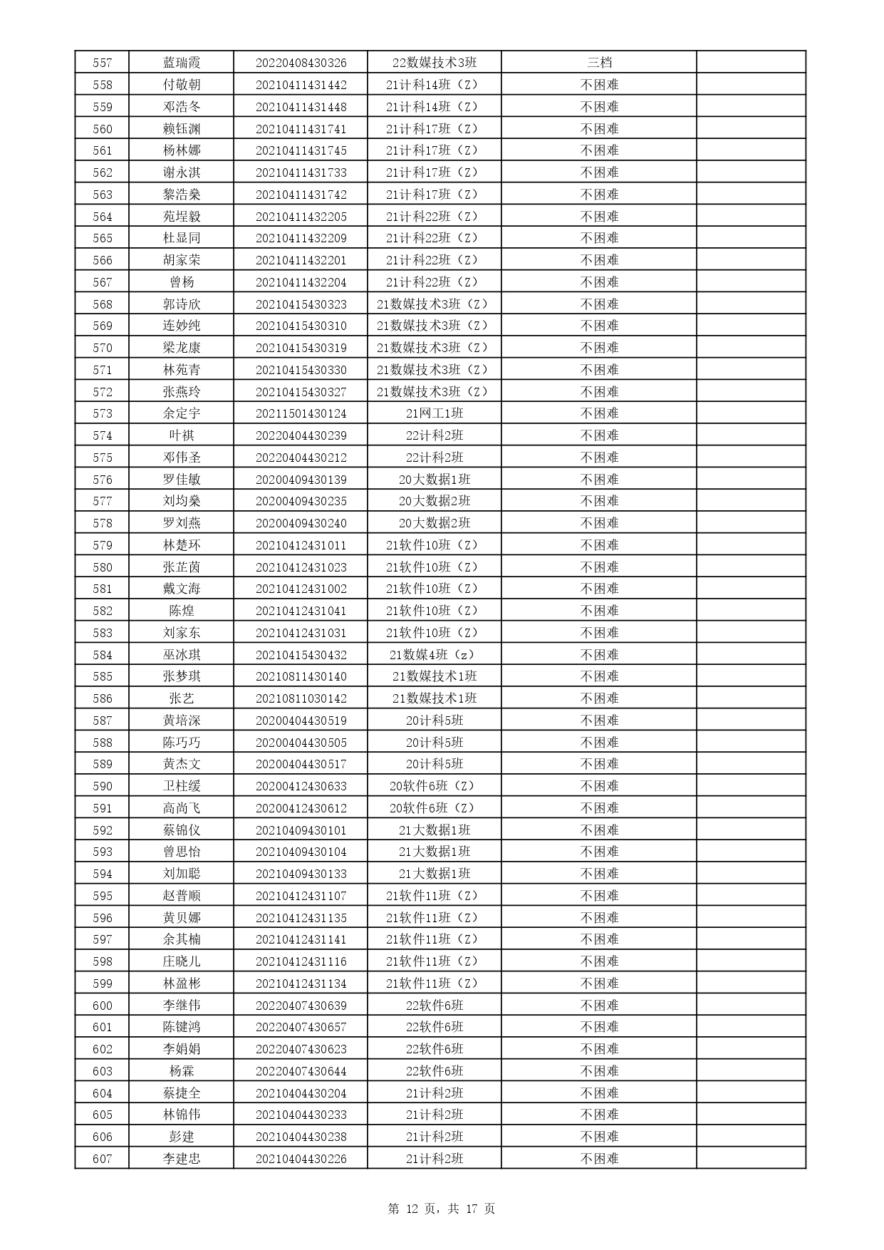 根据广东省教育厅及公司关于家庭经济困难员工认定的相关文件精神,按照公平、公正、公开的原则,经员工申请及班级、学院评审小组评议,现将公司2023-2024学年家庭经济困难员工认定等级初审结果根据反馈修改再次予以公示,公示期为2023年9月25日至2023年9月29日。若对公示有异议,请以书面形式向以下受理部门反映,反映情况时请署名真实姓名和联系电话,不签署真实姓名或不提供具体事实材料的,将不予受理。