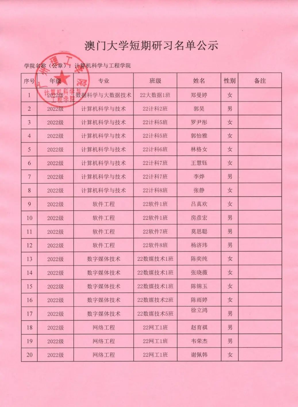 根据学校《关于选派优秀员工赴澳门大学短期研习的通知》的文件精神,“员工个人申请,二级学院审核推荐,按照公平、公开、公正的原则,现将评比结果予以公示,公示期为2023年10月20日至10月24日。若对公示有异议,请以书面形式向以下受理部门反映,反映情况时请署名真实姓名和联系电话,不签署真实姓名或不提供具体事实材料的,将不予受理。