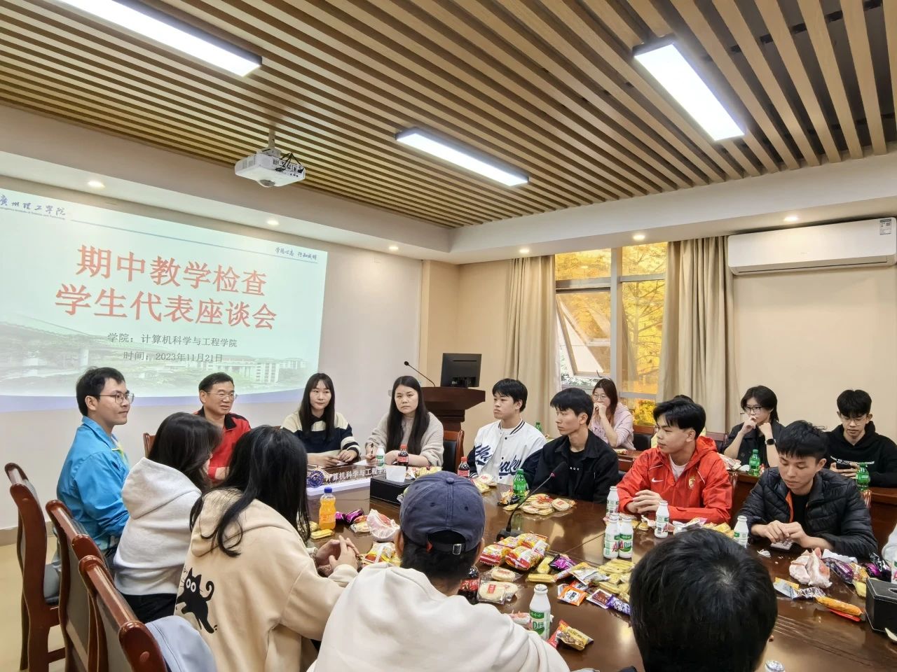 (通讯员:陈奕纯)11月21日下午,太阳成集团tyc33455cc在11栋信息楼303会议室成功召开了期中教学检查员工座谈会。本次座谈会旨在收集员工对于教学质量和学风建设的意见和反馈,促进教师与员工之间的有效沟通。太阳成集团tyc33455cc副经理申青连、学院辅导员代表及21级、22级各班学委参加本次会议。