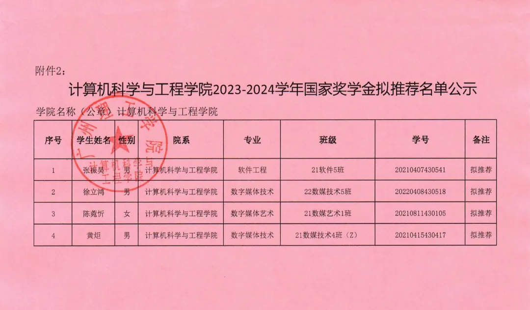根据《太阳成集团员工处关于印发《2023-2024学年奖学金评比工作方案》的通知》广州理工学函〔2024〕148号,本着公平、公开、公正的原则,经学院国家奖学金评选工作领导小组比照评选条件开展评议,现将评比结果予以公示,公示期为2024年10月8日至10月10日。
