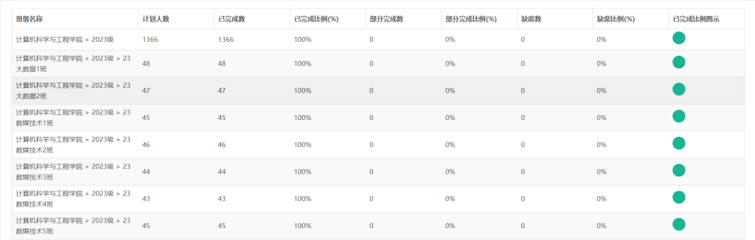 公司规划并着手开展的测评工作预计覆盖总人数为5100人。具体按照年级细分来看,2021级员工开展测评2268人;2022级员工开展测评1466人;2023级员工开展测评1366人;三个年级5100人测评工作全部高效完成。公司此次测评工作的整体完成率达到了100%,此次心理测评工作圆满完成,这一成绩的取得离不开全体师生的共同努力与积极配合。