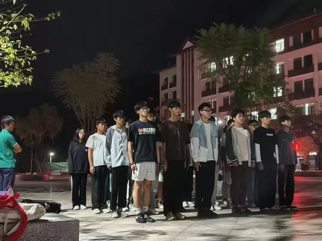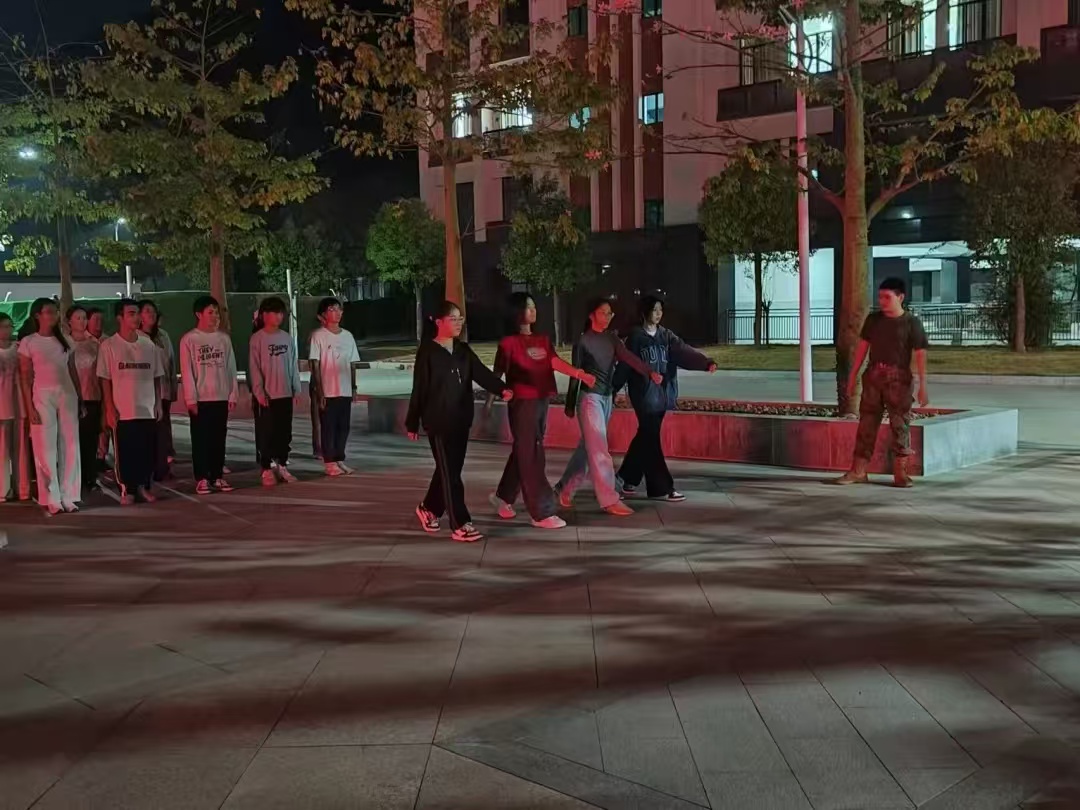 11月17日晚,夜色高悬,凉风轻拂,又迎来彩旗队的晚训。此次的训练内容包括:举旗齐步走、口号训练、正步。在训练过程中,教练在旁严格把关,对队员们的每一个动作细节都进行细致的纠正和指导。“手臂再抬高一点,步伐的间距要保持均匀”,这样的指导声不时响起,队员们也都认真聆听动作要领,迅速调整,同样的动作反复练习,努力提升着整体的训练效果。
