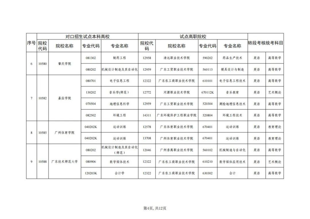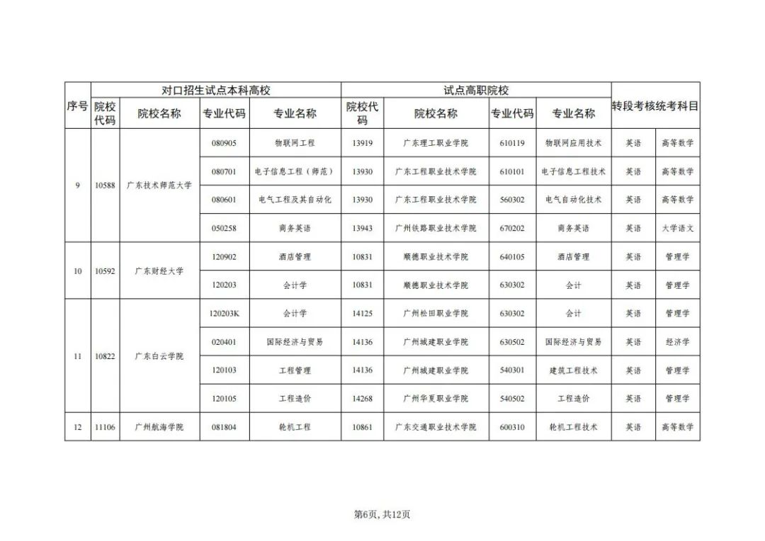 四、招生院校及专业计划省教育厅将视对口试点高职院校相应专业招生规模、公司产品质量、员工报考意愿情况、试点工作开展情况最终确定试点本科高校的对口专业招生计划。普通高等学校转段招生的招生计划在教育部下达的年度本科招生计划外单列安排,招生数纳入本科高校生均办学条件计算范围。