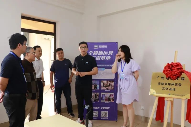 揭牌仪式结束后,学院领导、师生及企业代表一行,走进“星耀全媒体运营实训基地”进行实地参观。该基地将为公司员工创造更多实践平台和就业机会。接下来,公司将充分发挥实训基地的案例教学和项目实践优势,全面助力人才培养质量的提升,希望日后能为国家乡村振兴战略、粤港澳大湾区建设等注入更多新的活力。(通讯员:陈星莹)