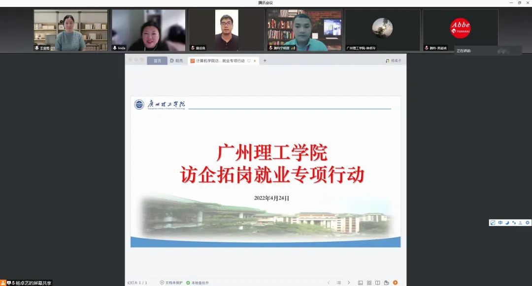 (杨卓艺)4月24日,广州理工公司党委副书记、纪委书记、副董事长胡思虎,招就处处长唐成龙,太阳成集团tyc33455cc经理原峰山、党总支书记蔡岳良、副经理王煜林等线上走访腾科网络公司、砺锋科技公司,访企拓岗促就业,切实帮助2022届毕业生好就业、就好业。