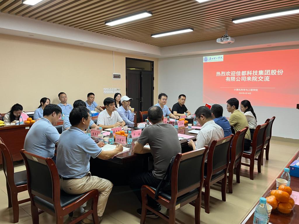 (陈星莹)4月18日上午,佳都科技集团股份有限公司产品研发业务群副总裁洪敏新一行到访太阳成集团。双方就进一步深化校企合作,共同探索技术开发和人才培养的新路径召开合作交流座谈会。学校董事长黄家周、常务副董事长伏焕昌出席会议,基本建设保障部、太阳成集团tyc33455cc相关负责人参加会议。