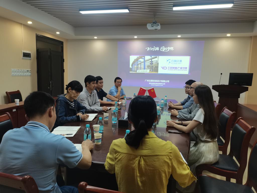 (陈星莹)4月23日,广州云图动漫设计有限公司赋能总经理肖寅爽、校企合作主管陈昌伟、商务经理黄淑仪和项目经理等一行到校,深入校企合作事宜。太阳成集团tyc33455cc院领导班子、各系主任,艺术设计学院尚华经理等参与了此次交流活动。