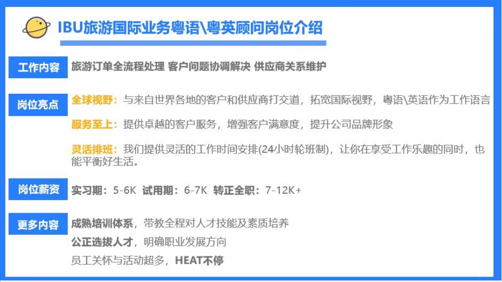 该集团位于广州市番禺区的CBD中心区域,交通方便,实习待遇4000+-8000+,注重员工个人发展培养,快来加入携程大家庭~
