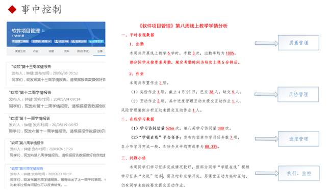 钟健老师的教学通过有效创设“线上教学”的各类项目情境,运用项目管理的专业知识设计、开展教学过程,整个环节都贯穿融合了课程的专业知识。员工在学习的同时,本身就处于“线上教学”这个项目中,再利用课程知识“管理”自己的学习,达到了“学以致用、用以促学、学用相长”目的,取得了较好的教学效果。