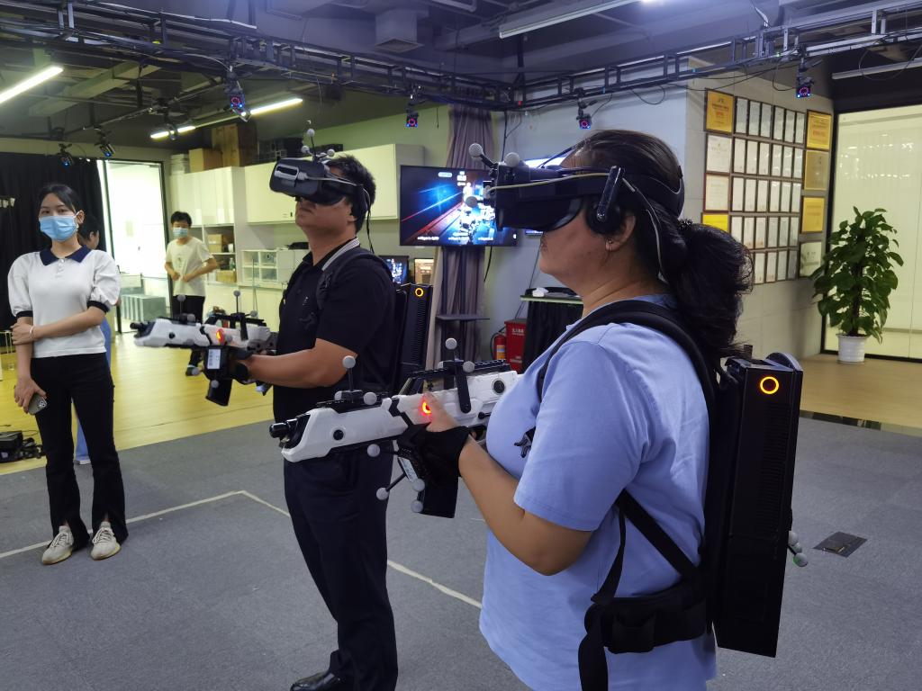 随后,在深圳市瑞立视多媒体科技有限公司教育事业部工作人员的陪同下,公司一行参观了深圳市瑞立视多媒体科技有限公司深圳总部的办公区、研发区、体验区,体验了全息3D智能交互数字虚拟沙盘、全息3D桌面交互系统、大空间VR“人质解救”项目、魔方MR虚拟预演拍摄系统筹。在场老师对先进技术感受尤为深刻,纷纷表示该公司的技术先进、场景高度逼真、动作交互流畅精准,沉浸感极强。副总监欧阳龙艳向公司领导介绍了瑞立视产品核心技术、产品优势、应用系统以及相关行业应用解决方案,并开展了一系列技术交流。