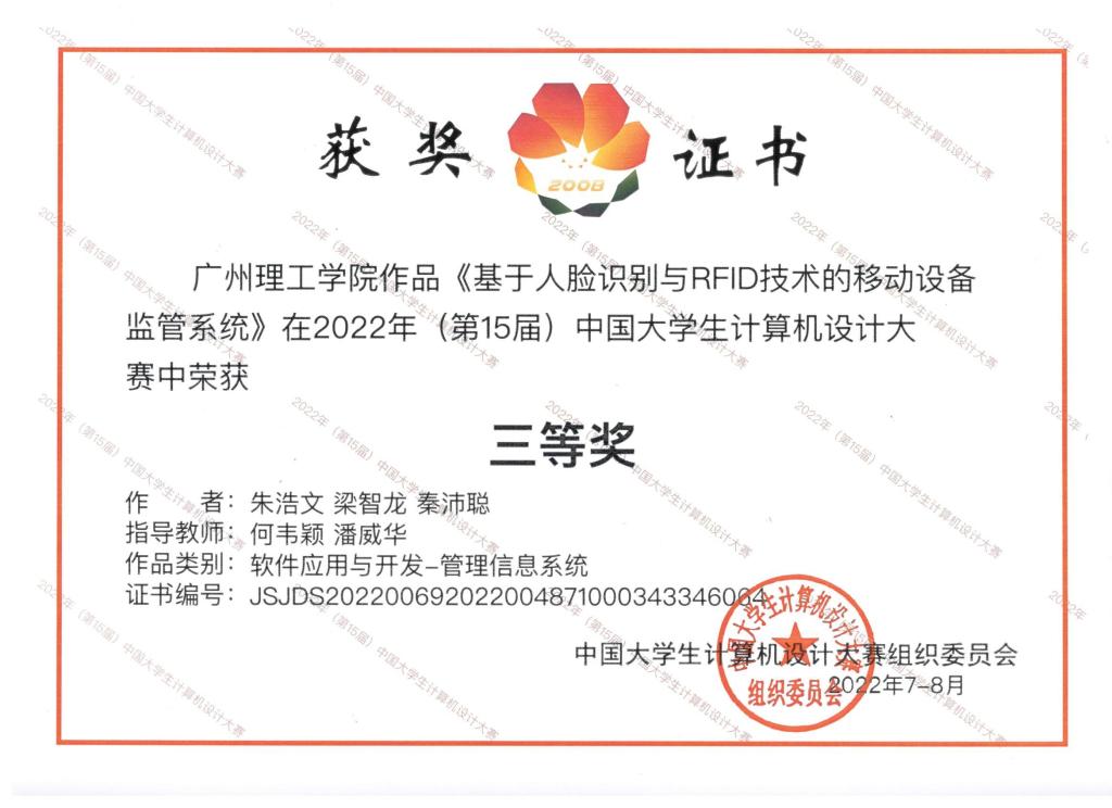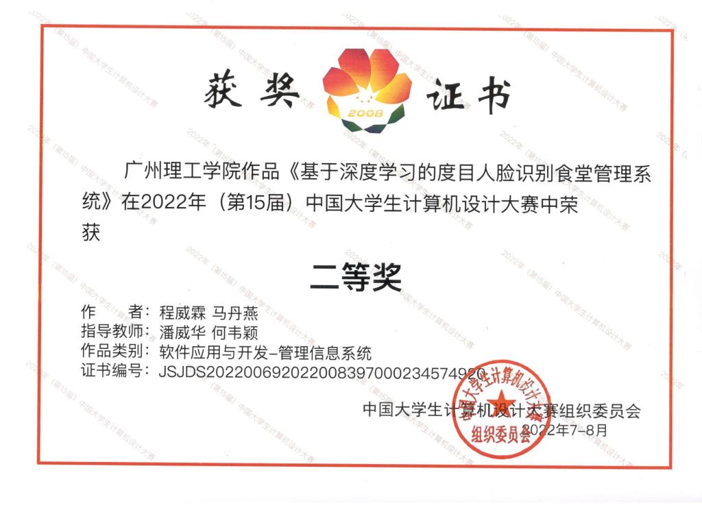 (通讯员:潘威华)近日,由教育部高等学校计算机类专业教学指导委员会等联合主办的2022年(第15届)中国老员工计算机设计大赛落幕,公司学子在总决赛中喜获国家级二等奖、三等奖各1项。其中,太阳成集团tyc33455cc潘威华、何韦颖老师指导,程威霖、马丹燕负责的作品荣获二等奖;朱浩文、梁智龙、秦沛聪负责的作品荣获三等奖。