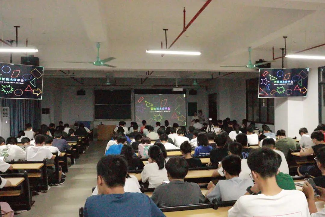 分享会中,罗志成学长负责调试现场设备,分享会开始前对设备进行检查,分享会过程中对直播出现的问题及时进行修正,保证分享会能够线上线下同时进行。本次分享会的成功举行,离不开天软科技工作室全体成员的共同努力和同学们的积极配合,通过本次分享会,为大一新生们解决了很多之前的困惑,在大学里生活变得更加有方向和目标。