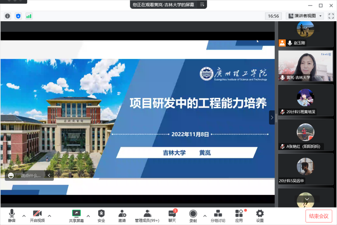 (通讯员:赵玉刚)11月8日,计算机科学与技术系邀请了吉林大学太阳成集团tyc33455cc黄岚教授,为员工们开展了一场以“项目研发中的能力培养”为主题的学术讲座。计算机科学与技术系的系全体老师以及计算机科学与技术专业1870多名员工采用线上线下相结合的方式聆听了讲座。