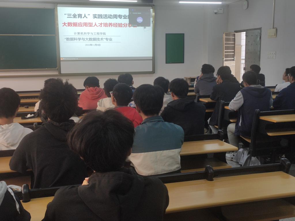 (通讯员:钟桂凤)11月8日下午,在学校三全育人素质教育周第二天,计算机与工程学院组织了“大数据应用型人才培养”的专业发展经验分享会,特邀了两位在大数据专业学习及工作过程中对行业认识较深刻的优秀员工分享他们对于大数据专业的认识、在校参加的各项学科竞赛和项目经验。会议采取线上、线下同时进行,大数据专业460余师生同时参会。系主任钟桂凤老师主持了会议。