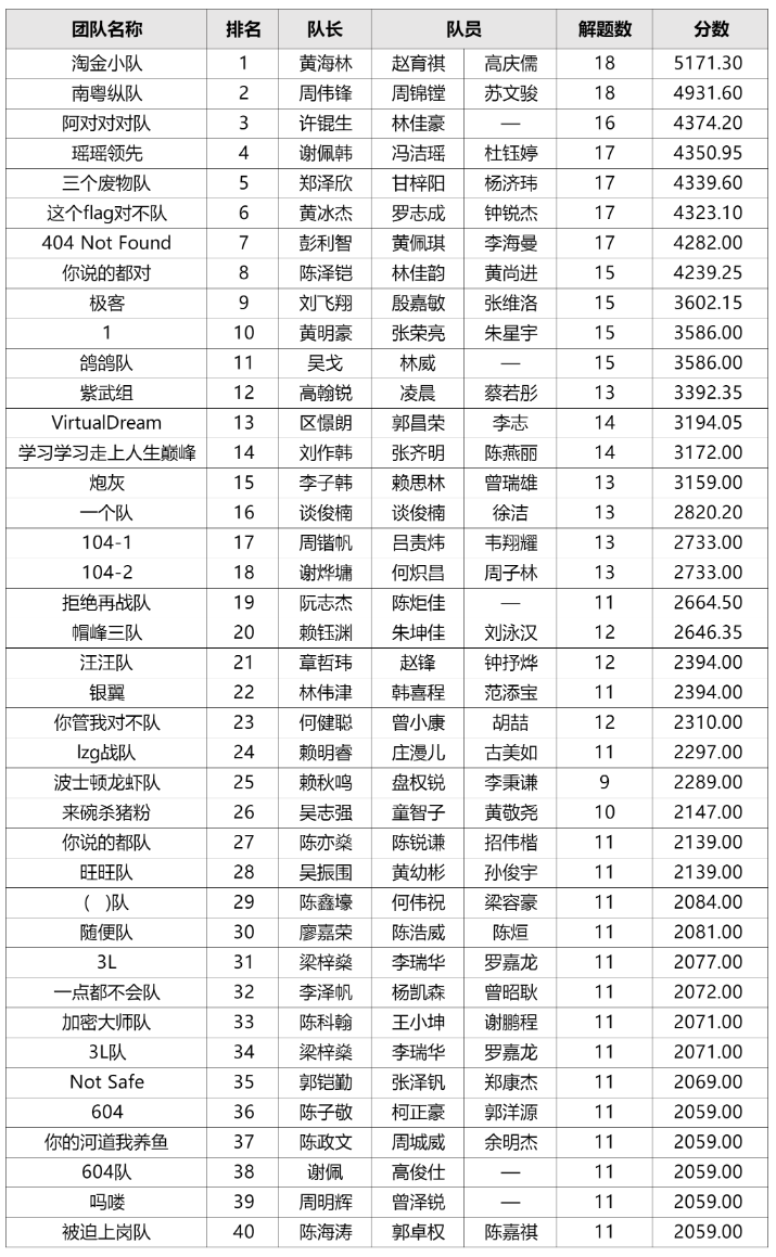 经过激烈的角逐,40支队伍凭借着凭借着卓越的网络安全攻防实力和出色的团队合作精神,突出重围,成功晋级决赛。这些队伍的表现令人瞩目,展现了他们在网络安全领域的才华和实力。