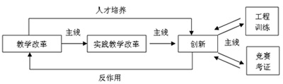 我系在已建立的“课程实验、课程设计(课程实训)、专业实习”三级实践教学体系的基础上,进一步强化了工程训练,并逐步构建了基于“三个模块”、“三条主线”的新的实践教学体系,并建立了“实验室、实习基地和校企实践教学共享平台”立体式实践教学环境。