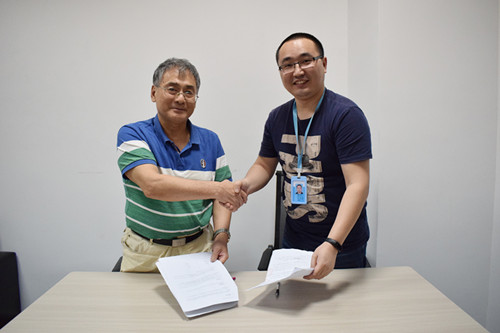 双方还就合作细节达成一致:学院近期会落实宣讲会、职业规划教育和讲座等前期宣传,而后结合具体项目择优选派员工参与;公司会尽快确定具体方案,瞄准行业从业人员基本素质要求,配合相应的技术手段和制度手段助推人才成长。最后,原峰山经理和谢地总经理现场签订了“校外实习就业基地”和“花牵牛软件教育培训中心”的合作协议。