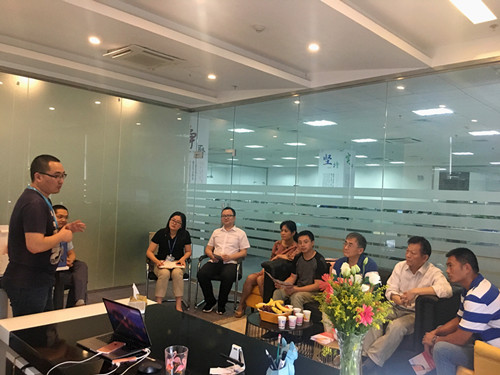 开锐教育集团总经理檀琳琳、广州花牵牛软件公司总经理谢地和人力资源部经理金晶对公司一行表示热烈欢迎。首先,谢地总经理简单介绍了广州花牵牛软件公司的主营产品、经营方向和核心价值观。据介绍,该公司是从研发针对解决电商客服问题的风信子系统起步,而后重点针对教育行业研发了企业模式的教务管理系统、智能题库系统等,确定了盈利模式和发展方向后,公司对汽车公共系统、金融等多个行业进行业务渗透。紧接着,人力资源部经理金晶则结合“让技术更有价值”的公司愿景,从人才需求的实际出发,希望学校能在教学过程中融入更多符合企业实际的课程内容,并特别强调能选拔一些自驱力强的同学,通过实习生招聘和项目实践的方式,帮助员工更好成长。