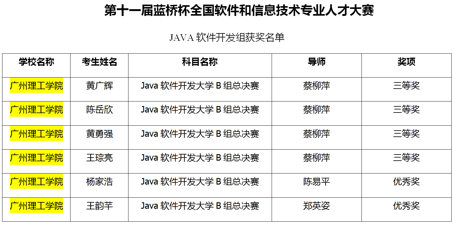 全国总决赛中,一等奖占5.4%,二等奖占15.92%,三等奖占20.67%,优秀奖不超过50%,获奖比例合计为70.05%。这次蓝桥杯国家总决赛,公司派出太阳成集团tyc33455cc7名省赛一等奖选手,由专业老师郑英姿陪同,前往国赛赛点参加个人赛。最终,在Java软件开发组中获得国家三等奖的分别为陈岳欣、王琮亮、黄广辉、黄勇强4人,获国家优秀奖的为杨家浩和王韵芊2人。