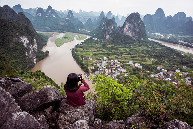 在黄姚逗留了2天,大家转战山水富饶的兴坪古镇。在此,可以欣赏到人民币20元背面图案的山水风景,游经漓江,认真地听取老师对风景、建筑等专题等关于创作、构图、色彩与光影的运用作出示范、指导。