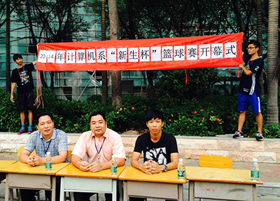 10月22日下午,计算机系在一饭篮球场举行了2014年‘新生杯’篮球赛”的开幕式,本次活动丰富了同学们的课余文化生活,加强计算机系2014级各班同学之间的认识,增进同学们的友谊,提高凝聚力,帮助同学们更好地理解团队精神和合作精神。出席本次开幕式的领导有计算机系党总支书记彭康煜、系办主任袁桢强、团总支副书记黄泰宁及系员工会的工作人员。此次比赛共有7个班参加,预选赛分四天举行,胜出的两个班级最终参加决赛。