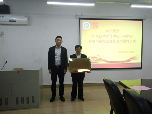 校企双方领导举行了签约、授牌。根据合作协议,在轩辕网络公司成立“广东技术师范学院天河学院校外实习就业基地”,在天河学院成立“轩辕网络IT人才培养基地”。通过校企深度合作,可望推动双方进一步开展多层次、多形式、多领域的合作,实现校企资源的有机结合和优化配置。