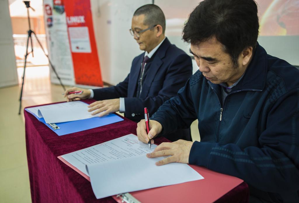 双方举行了“校企合作协议”签字仪式,王碧武先生、李波先生将“红帽学院”牌匾授予蔡敏副董事长和申青连副经理。