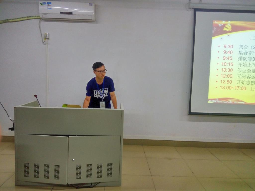 大会开始,首先由主持人柯鹏擎宣布到会情况,接着由罗芳芳宣读本次活动主要的工作内容以及各地铁站的人员分配等相关细节问题,再由建筑工程学院员工第三党支部联络人何炳锋解说本次活动的注意事项,最后主持人宣布本次动员大会圆满结束。