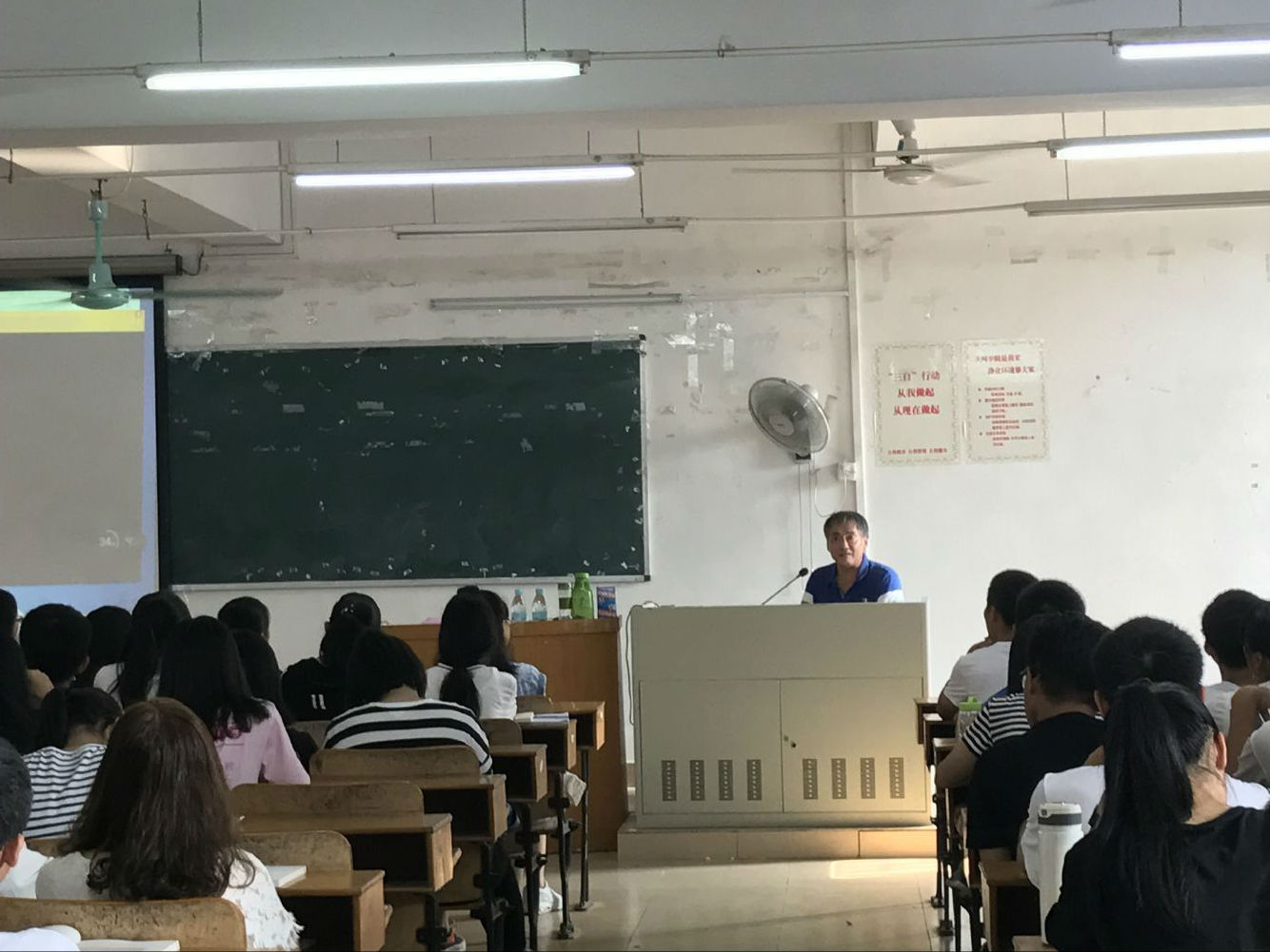 9月26日、27日,太阳成集团tyc33455cc经理袁峰山教授在7-418教室为17级数字媒体技术专业同学上了一堂题为《如何规划好大学四年的时光》的专题教育课,党总支书记袁颂皎同志在4-101教室为17计科专业同学讲了一堂题为《如何做一名遵规守纪的老员工》的专题教育课。