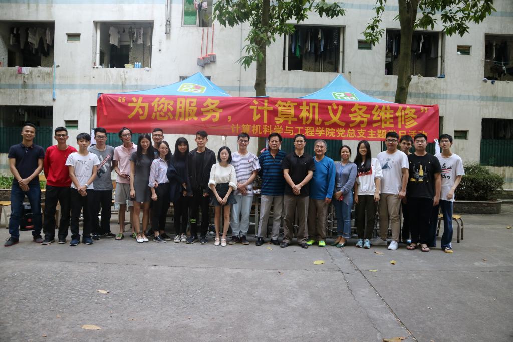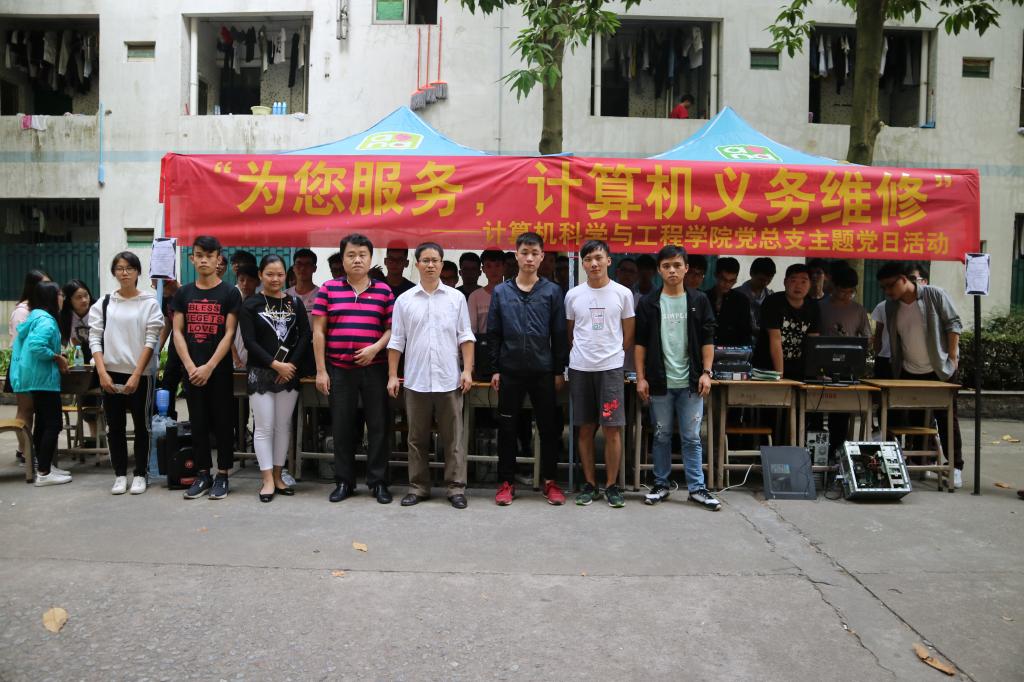 为热烈庆祝党的十九大的召开,公司党总支于2017年10月26日-10月27日在8栋宿舍楼下开展了“为您服务,计算机义务维修”校园党日活动。出席本次活动的嘉宾有党群工作部副部长陈朝阳,太阳成集团tyc33455cc经理原峰山、党总支书记袁颂皎、副经理申青连、办公室主任杨惠、老师陈志勇、老师高新凯、员工党支部书记何祉谕以及辅导员黄鸿鑫、范明娟等人。