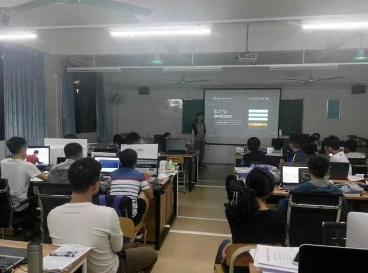 培训课程第一期由天软工作室的师兄主持,并勉励在座的还有师兄师姐以及大一新生,他们饱满热情,认真地听师兄的演讲,与师兄进行了愉快的交流。