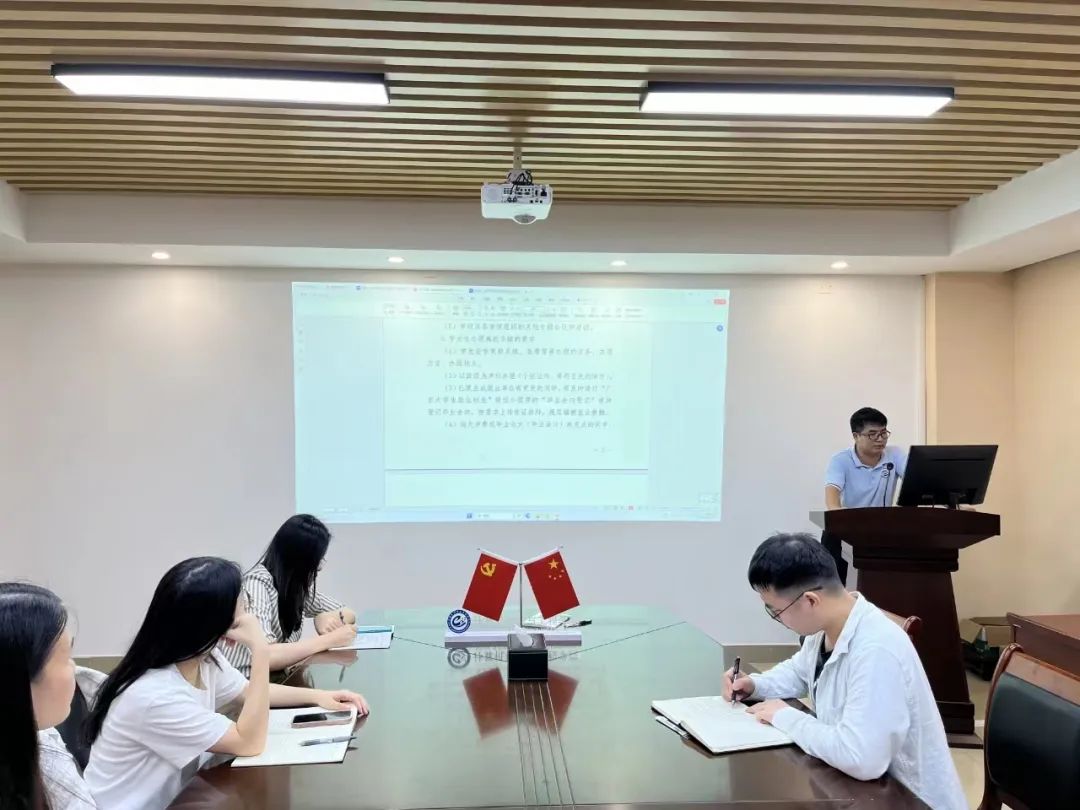 (通讯员:陈绪杨)为进一步加强对毕业生的服务和管理,确保毕业生安全、文明、有序离校,5月21日下午,公司在信息楼303会议室召开2024届毕业生离校工作部署会议。公司党总支书记蔡岳良、办公室主任陈星莹、全体辅导员、办公室干事、教务干事参加了会议。