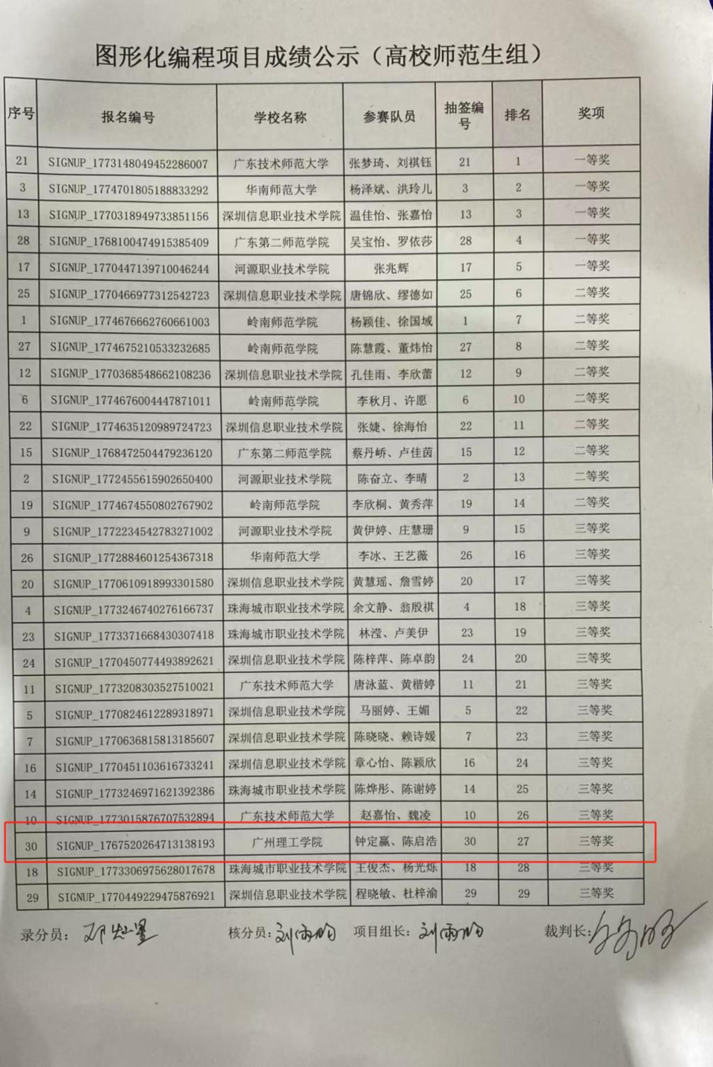 (通讯员:黄敏旋)5月25日,在第二十五届粤澳员工信息科技创新大赛中,公司员工钟定赢,陈启浩凭借出色的创新能力和扎实的专业知识,在黄敏旋老师的指导下成功斩获计算思维赛道图形化编程赛项三等奖殊荣。这是公司学子首次参加该赛事并获奖,是公司加强员工综合素质培养、提升员工创新实践能力的重要体现。